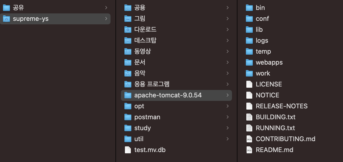- $ cd ~/apache-tomcat-9.0.5X/bin <--- 빨간색 부분은 버전에 따라 상이. cd ~/apache-tomcat-9.0.54/bin 사용