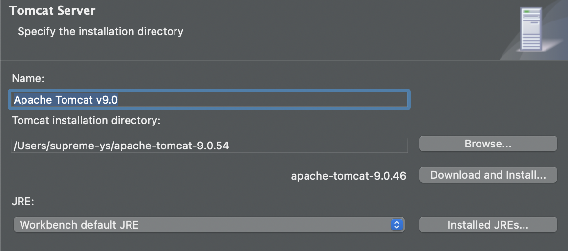 - 이후 톰캣이 설치된 경로를 입력해주면 연동이 완료됩니다.